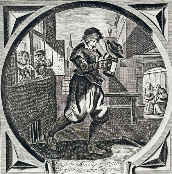 Bilder Jacob Cats (1577–1660) – Secret Love, Cough, and Money – Engraving (1630–1660)