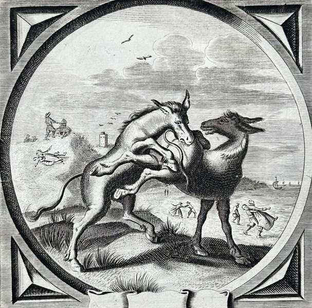 Bilder Jacob Cats (1577–1660) – An Ass Bites the One Who Kicks Him – Engraving (1630–1660)