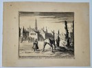 This engraving depicts the somber aftermath of the execution of Maeyken Wens, a Dutch Anabaptist martyr, in an urban square in Antwerp. The composition centers on a young boy, her son, who is shown kneeling and searching through the ashes of the pyre for the tongue screw that had been used to silence his mother before she was burned at the stake. Another child stands beside him in a gesture of grief, while in the background, a crowd of onlookers and the distinct Gothic spires of the city, including the Cathedral of Our Lady, provide a stark architectural context to the scene. The work utilizes a dramatic play of light and shadow to emphasize the emotional weight of the event and the physical remains of the execution site. This illustration was created for the Martyrs Mirror, a seminal book documenting the history of Christian martyrs, intended to serve as a visual testament to faith and endurance under persecution.