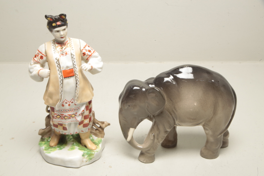 Porslin. 1st: "Odarka" Ukraina, (H= 25cm)1st: Elefant: (H= 16cm)