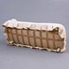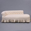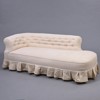 Klädd i ljus textil med djuphäftad rygg, fotavslut med hjultrissor i mässing, sitthöjd 43, 185 cm