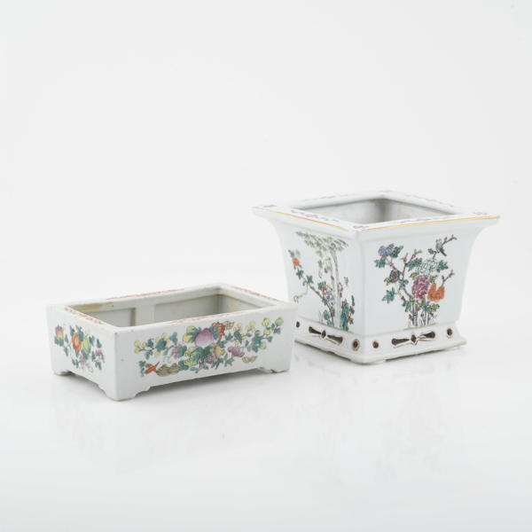 1900-tal, dekor i emaljfärger, höjd 7 - 15 cm, 22 x 14 resp 20 x 20 cm