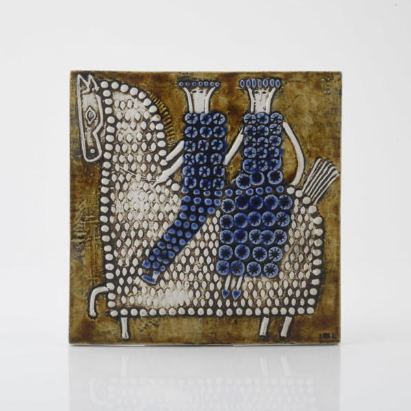 Gustavsberg, glaserat stengods, ryttare ur serien Unik, 22,5 x 22,5 cm