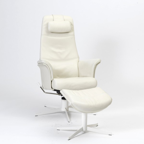 Sessel Elegance, klädd i vitt läder, justerbar