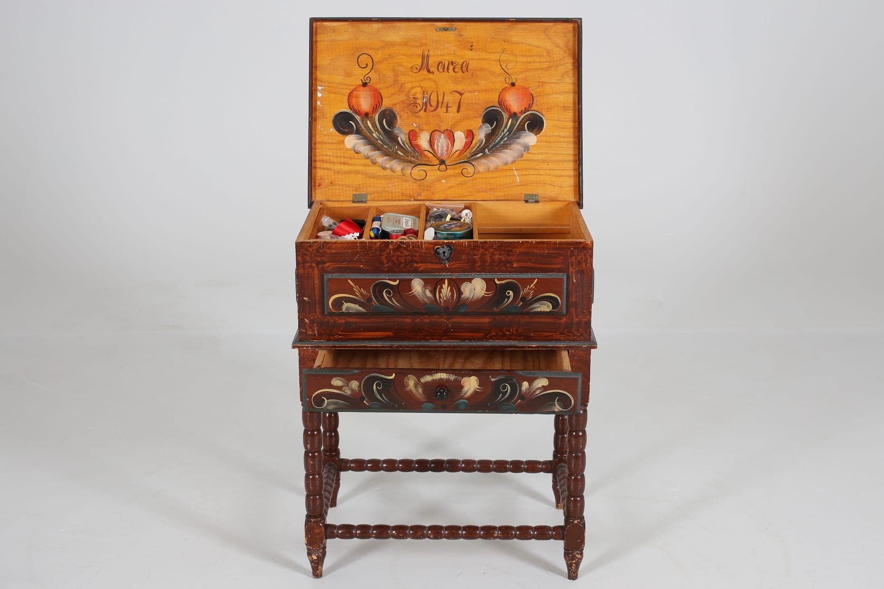SYSKRIN med sytillbehör, allmoge-stil, 1900-tal