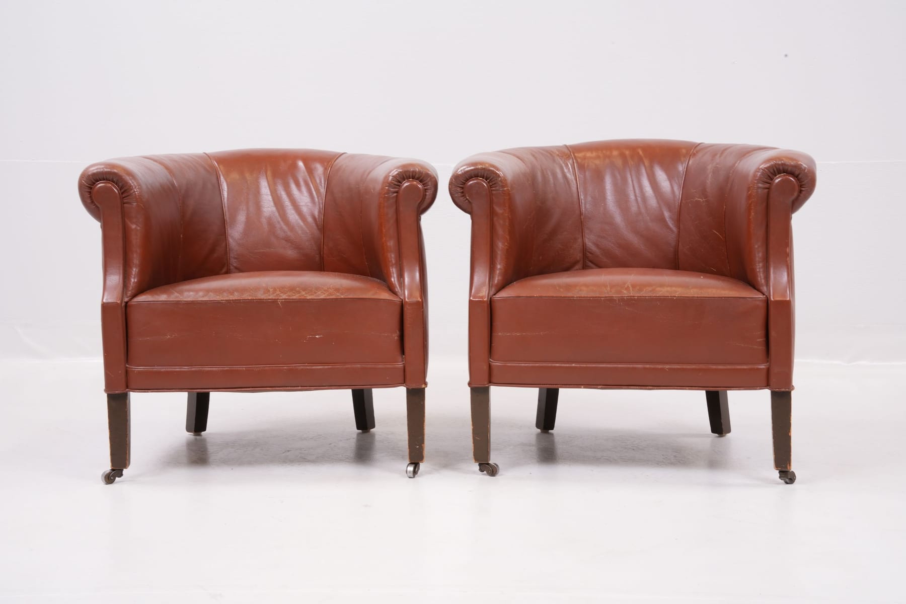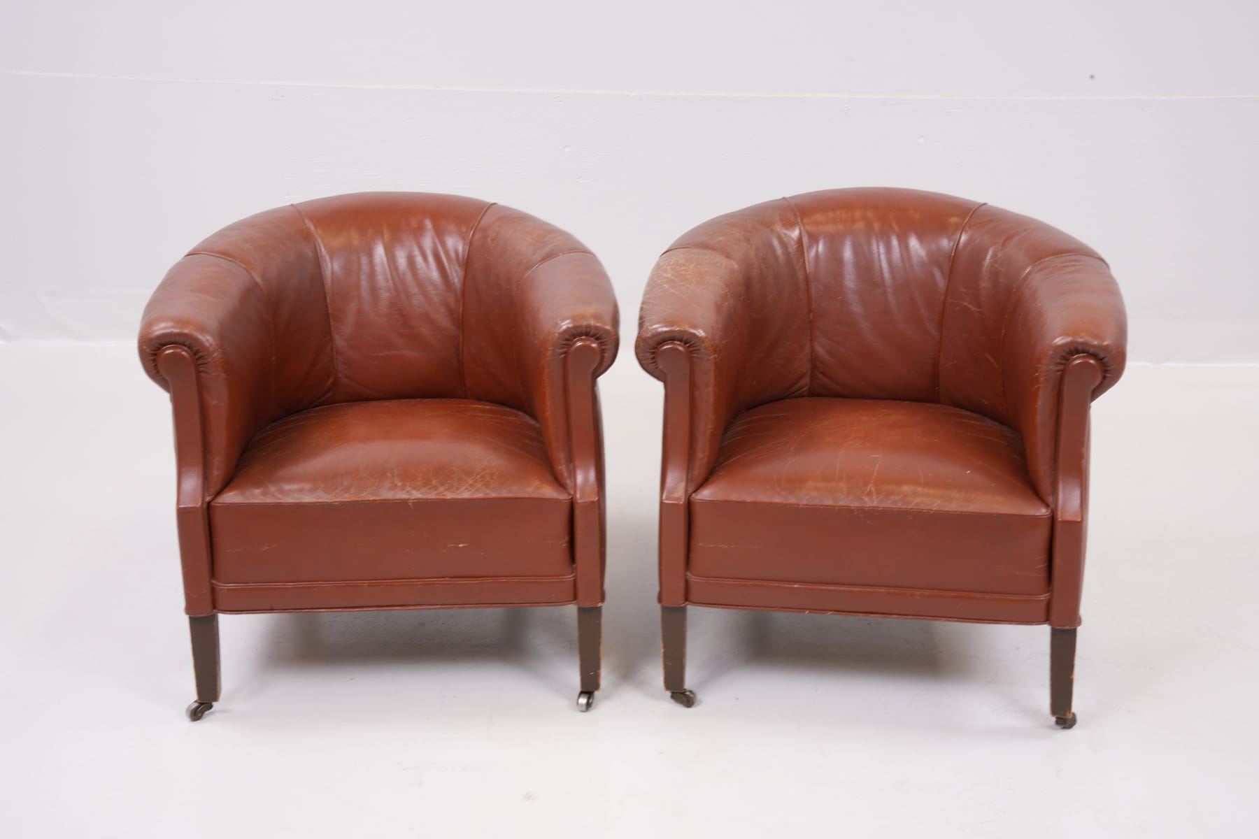 CLUBFÅTÖLJER, ett par, skinn, 1920-tal