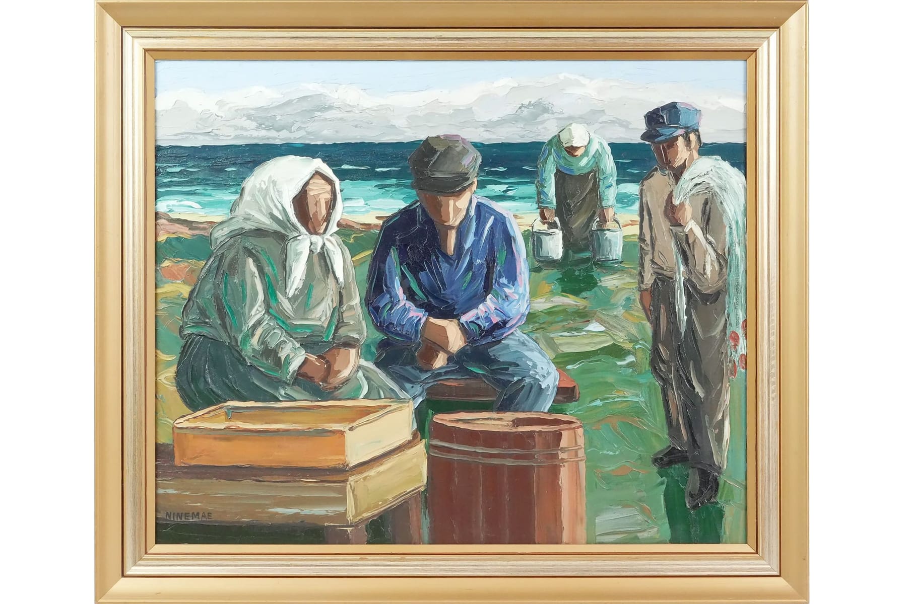 BORIS NINEMAE (Estland/Sverige, 1925-1991), olja på duk, "Efter morgonfisket"