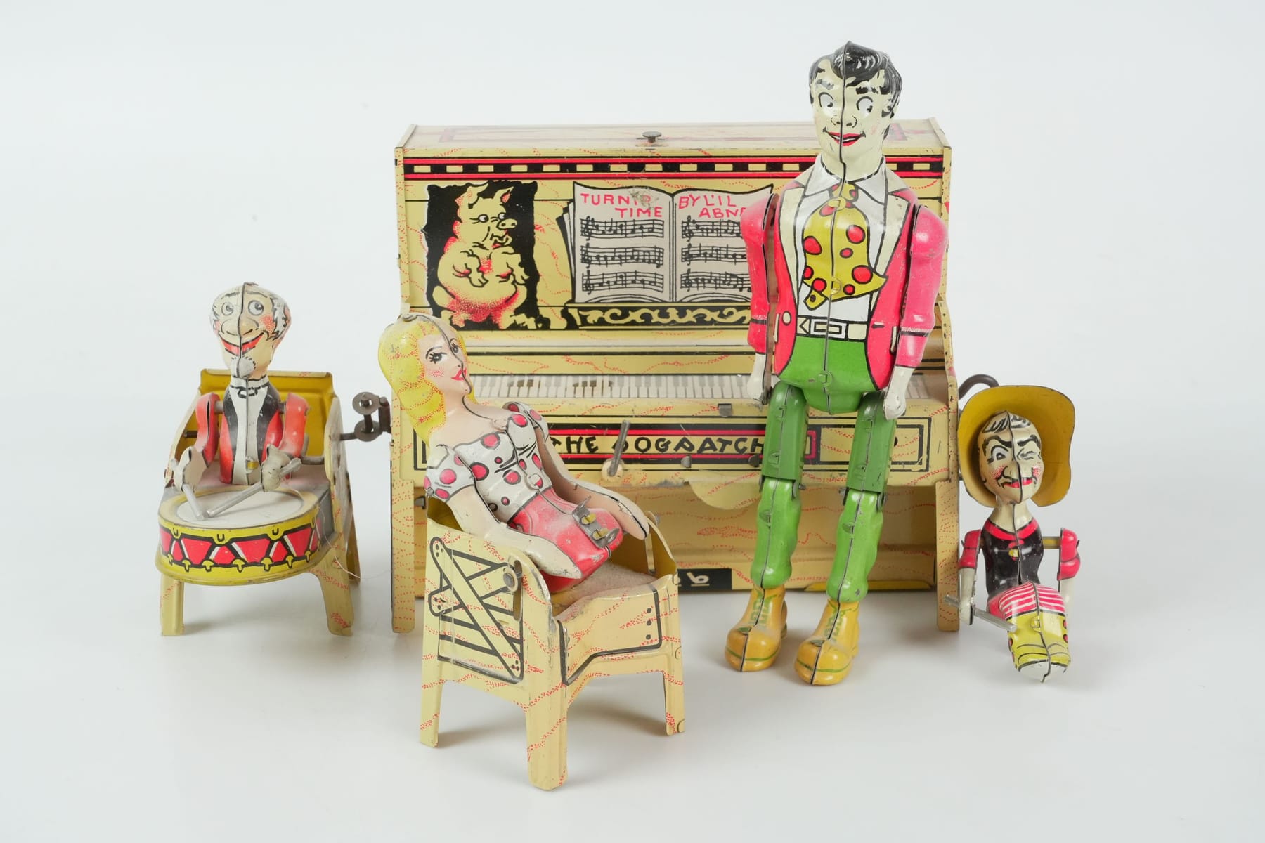 PLÅTLEKSAK, orkester, "Li'l Abner and his Dogpatch band", Unique Art Manufacturing Co, USA, 1900-talets förra hälft