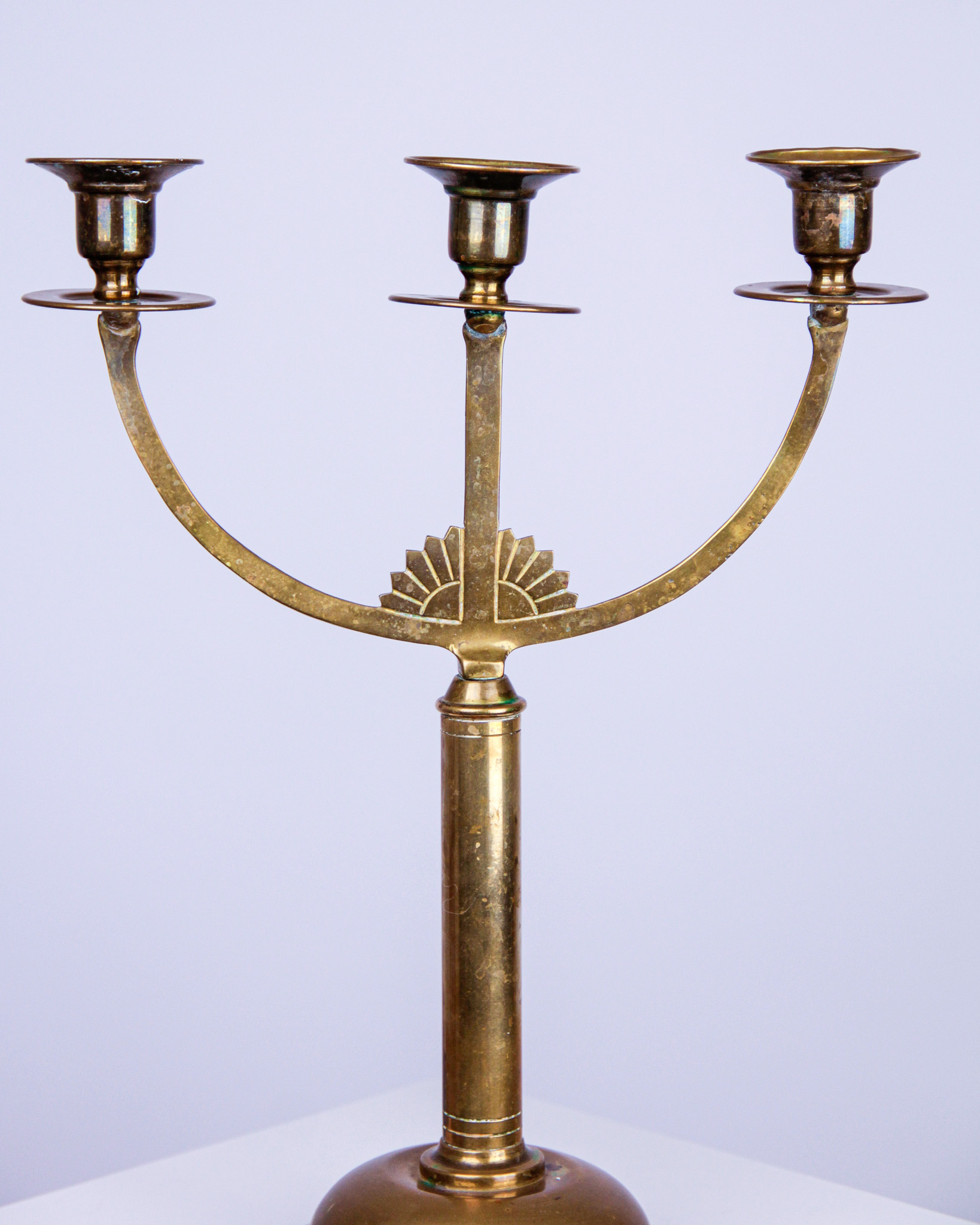 Kandelaber, trearmad, jugend, mässing, 1900-talets början
