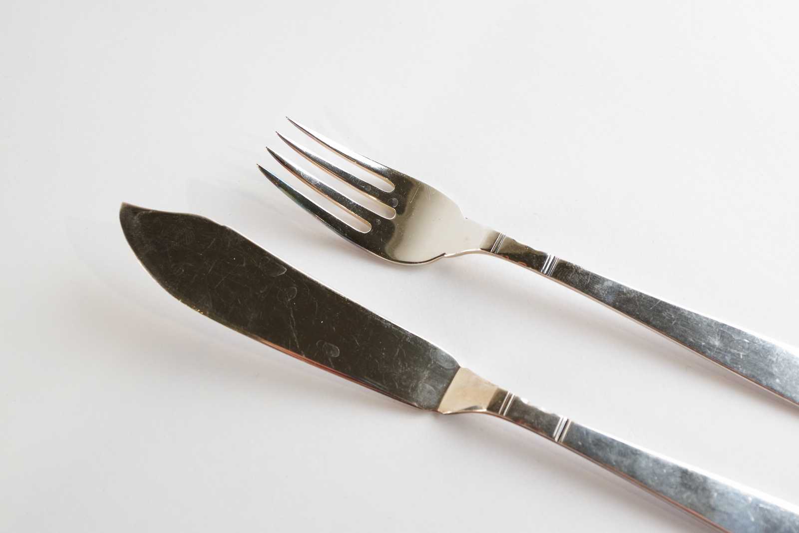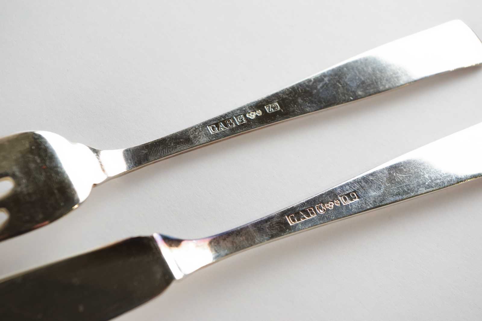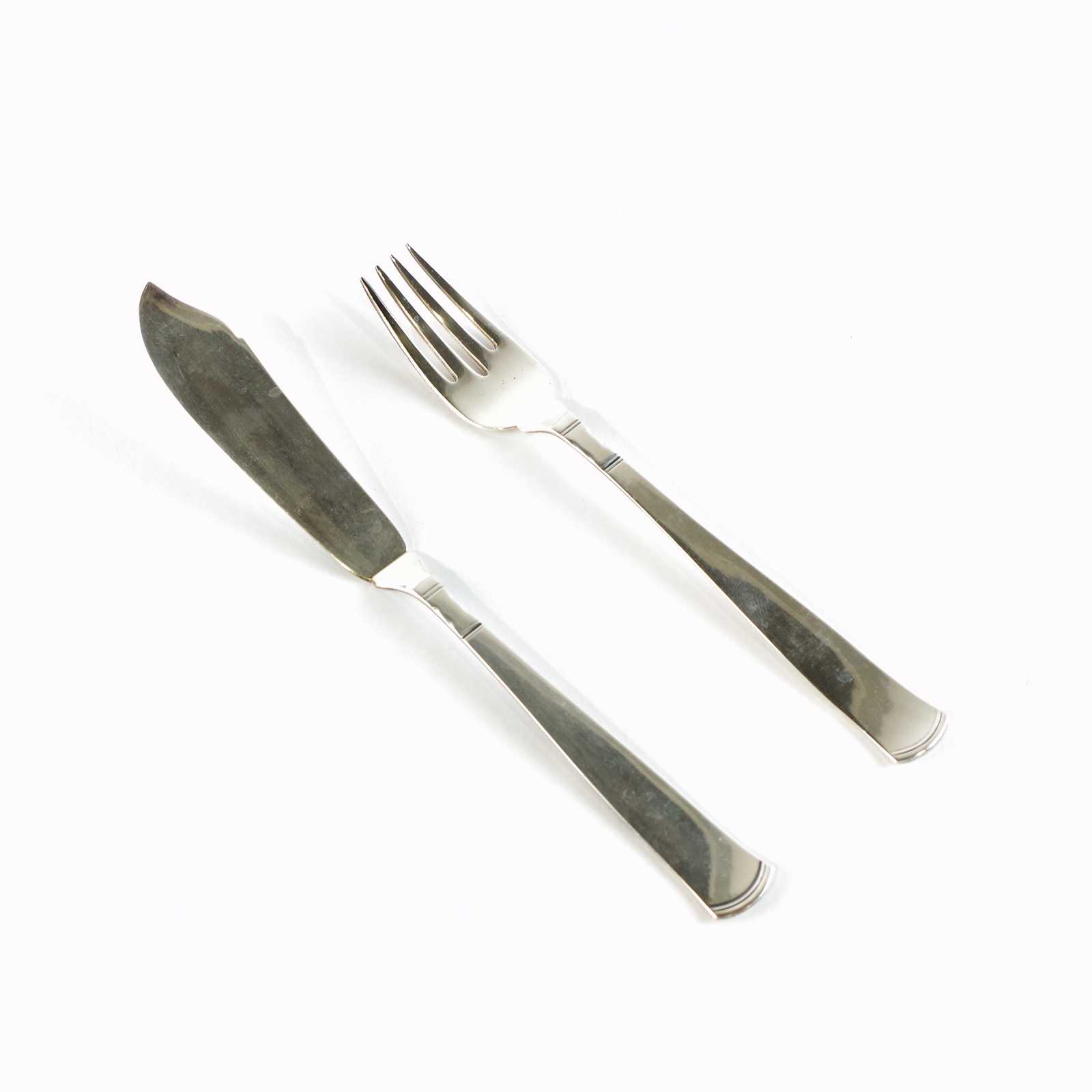Auktioner Guld, Silver & Smycken JACOB ÄNGMAN. Fiskbestick, 16 delar, silver, "Rosenholm", GAB. Gafflar längd: 18cm Knivar längd: 21cm, Total vikt: 656 gram