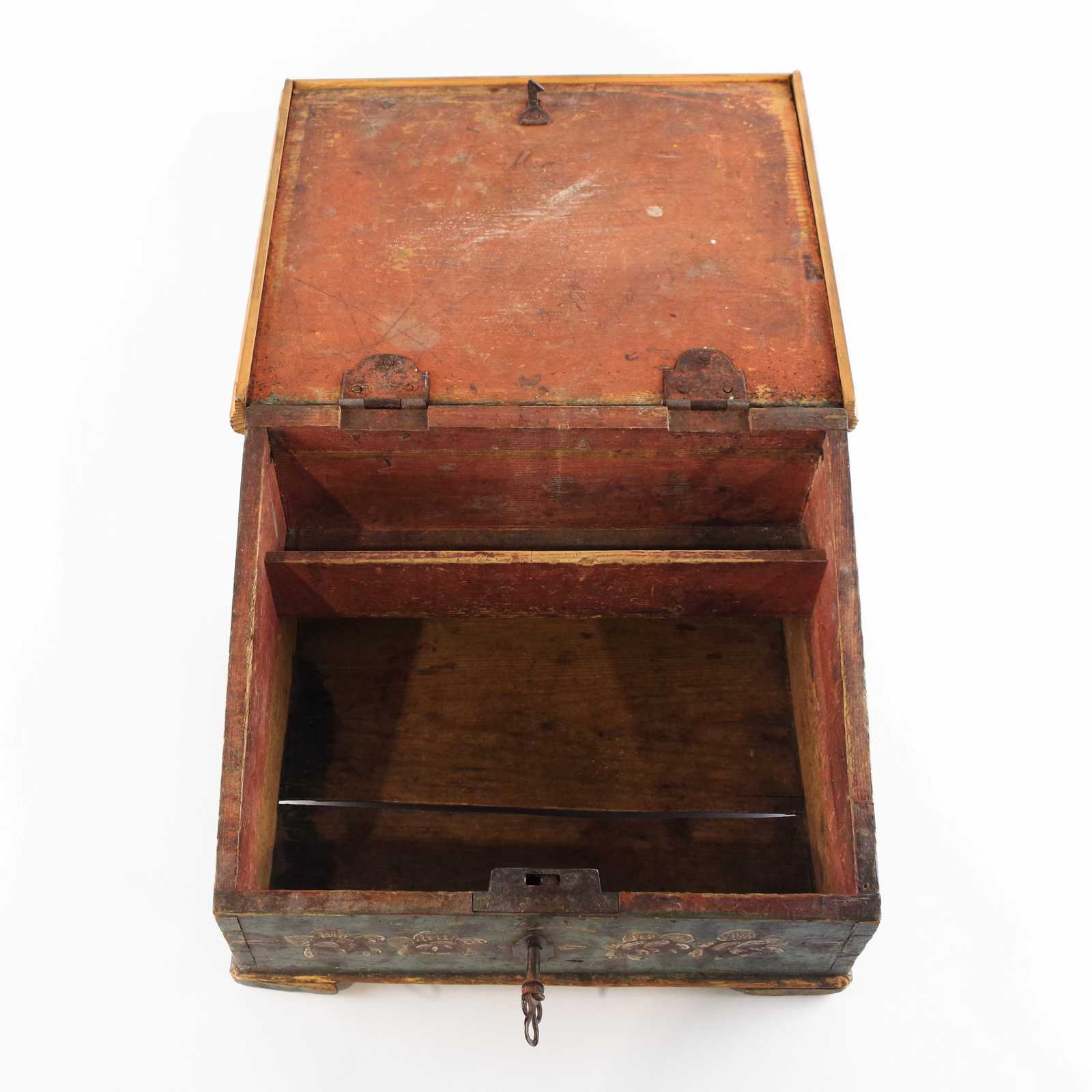 Bilder PULPETSKRIN originalmålning, 17/1800-tal. H:19x 32x 25cm. Kantlister samt 1st fot senare kompletterat.