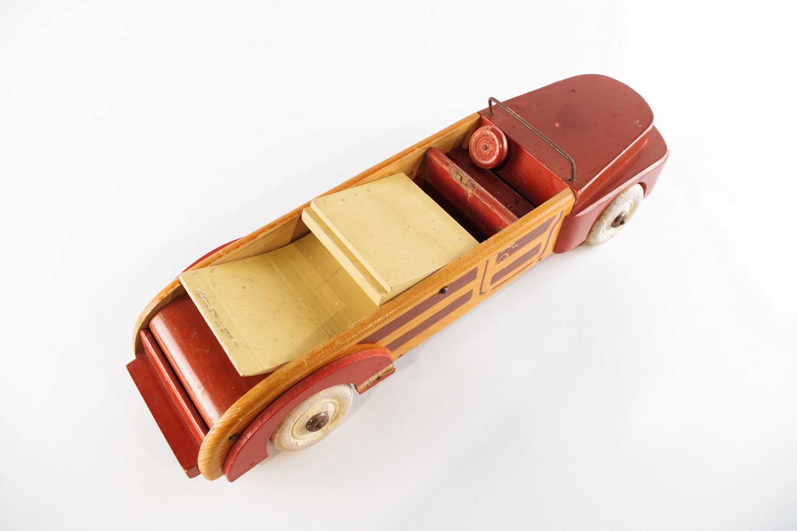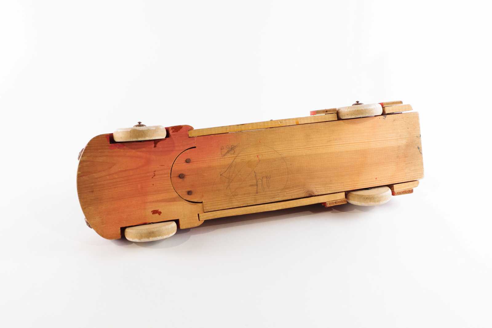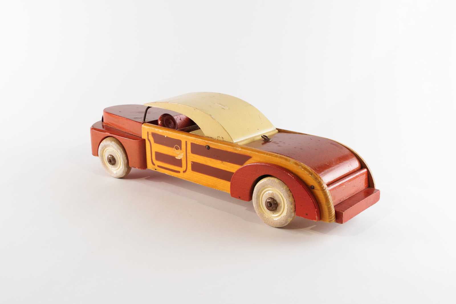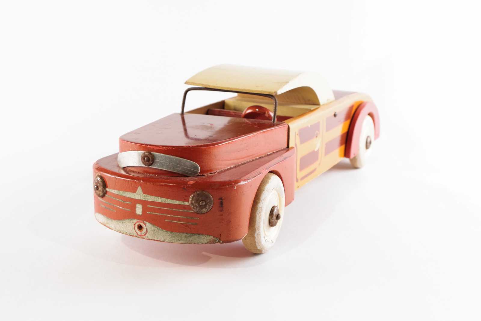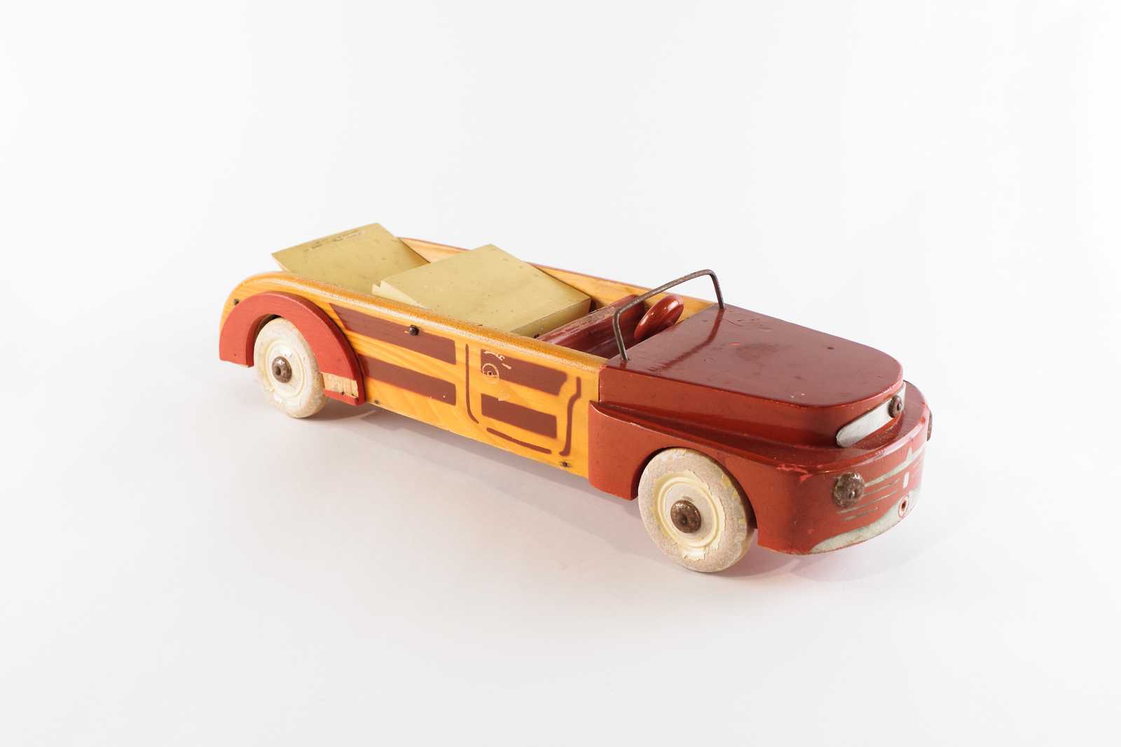 Bilder LEKSAKSBIL. Cabriolet, trä, Gullrings leksaker, ovanlig bil, 1950-tal. L:48cm. Bruksslitage