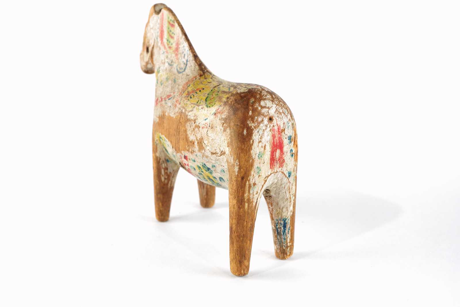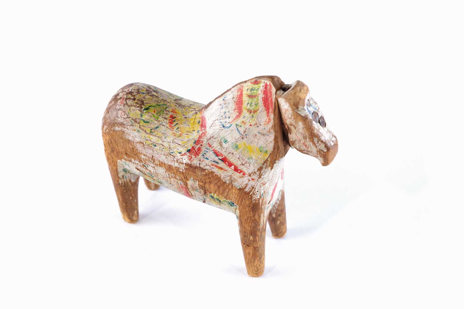 Bilder DALAHÄST, 18-1900 tal. Höjd: 13,5cm Längd: 14cm. Färgbortfall, lagat huvud.