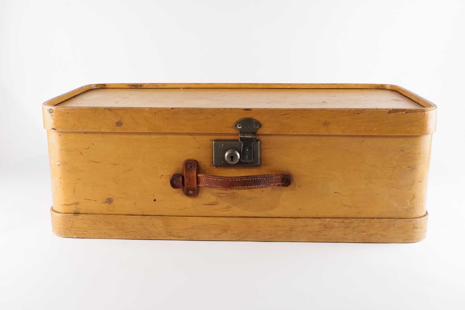 ALVAR AALTO. Koffert/Picknickväska, björk, Luterma Jyväskylä, 1930-tal. H:23x 66x 33cm. Bruksslitage, märken.