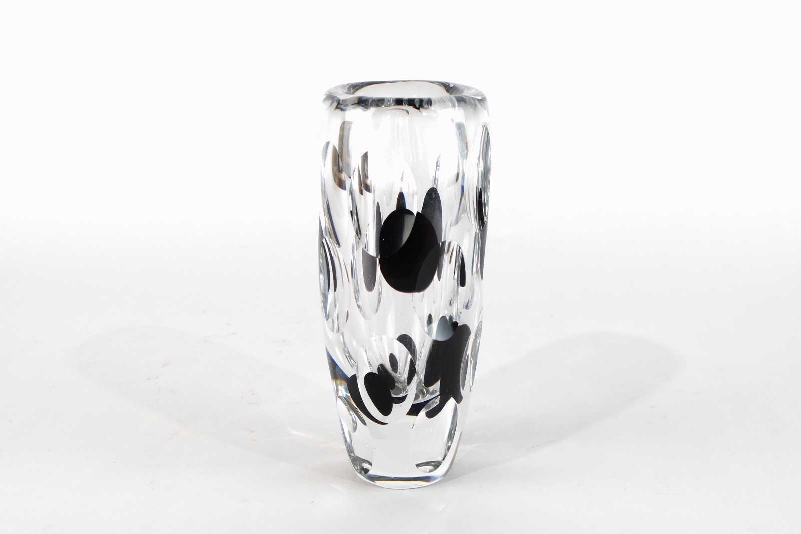 VICKE LINDSTRAND. Vas, underfång i svart, Kosta, signerad. Höjd: 20cm