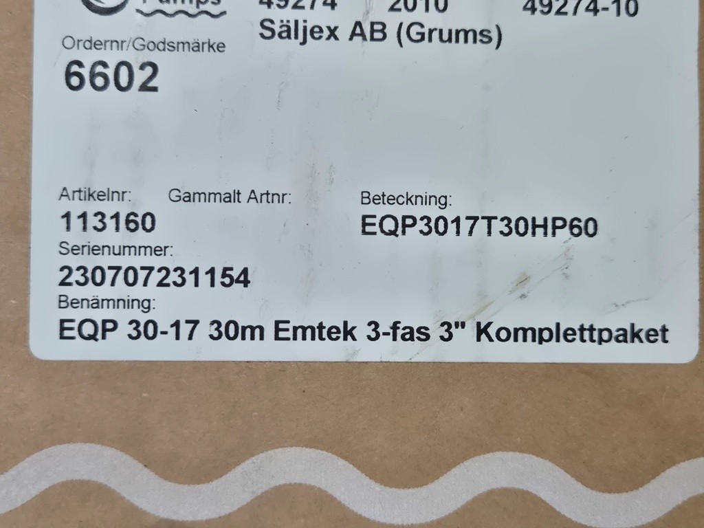 Nytt djupbrunnspaket innehållande pump EQP 30-17 med 30 meter kabel.30 meter PEM-slang100 liters hydroforkärl + anslutningsdelar.