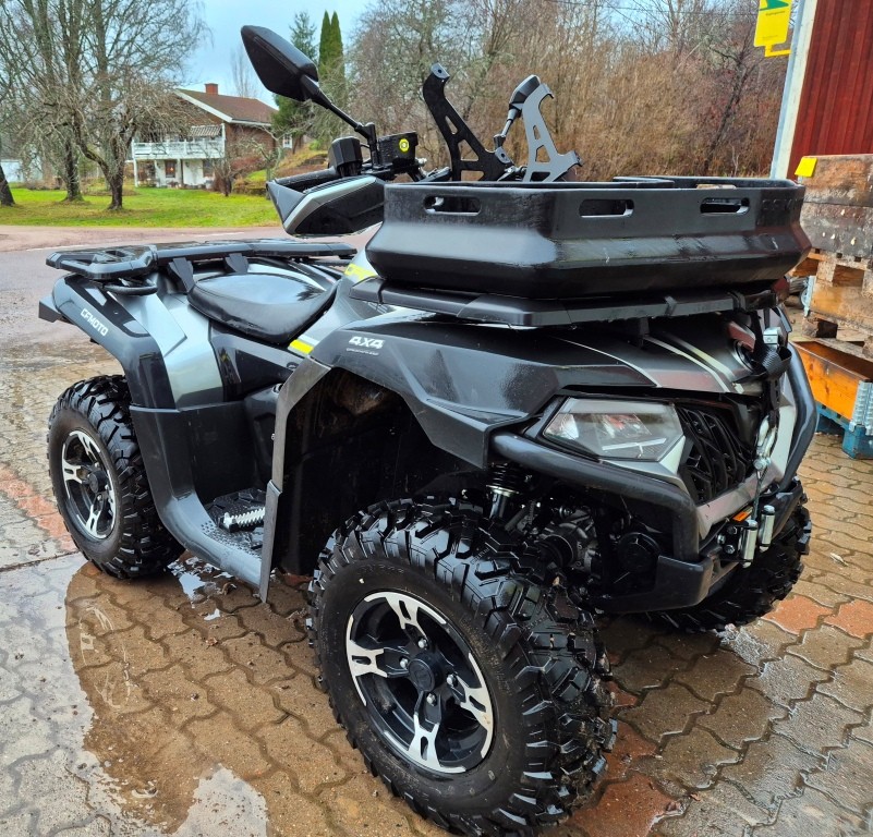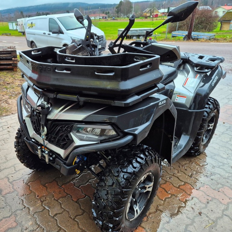 ATV CF-moto Cforce 625 inkl snöbladÅrsmodell: 2022Motor: 4-takt 580cc (45hk)Växellåda: AutomatiskDrift: 2WD/4WD / Elektronisk diffspärrRegnr: MOS85ERegistrerad som traktor klass BBesiktad tom: 2027-05-31Mätarställning: Endast 11 mil