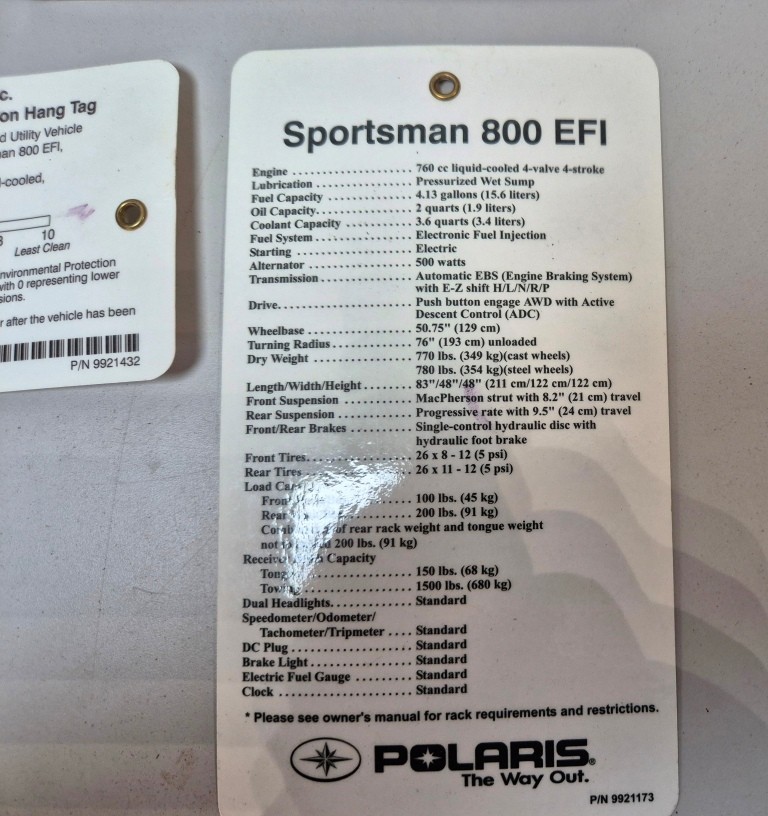 Märke/Modell: Polaris Sportsman 800 EFÅrsmodell: 2008Motor: 800cc Twin (64hk)Växellåda: AutomatiskDrift: 2WD / 4WD, elektrisk diffspärrRegistrerad som terrängskoterMätarställning: 163,9h