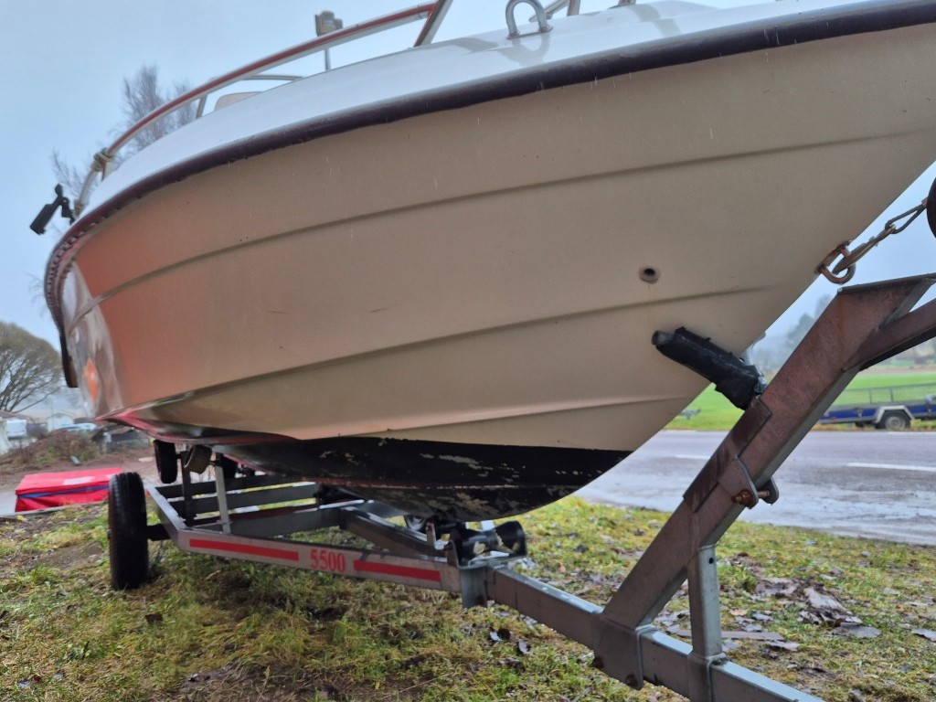 Brukad i sjön senast för 3 år sedanEnl. uppgift fungerande motor (Ej provstartad av oss på bna)Ytliga skador på skrovet i fören (se bilder)