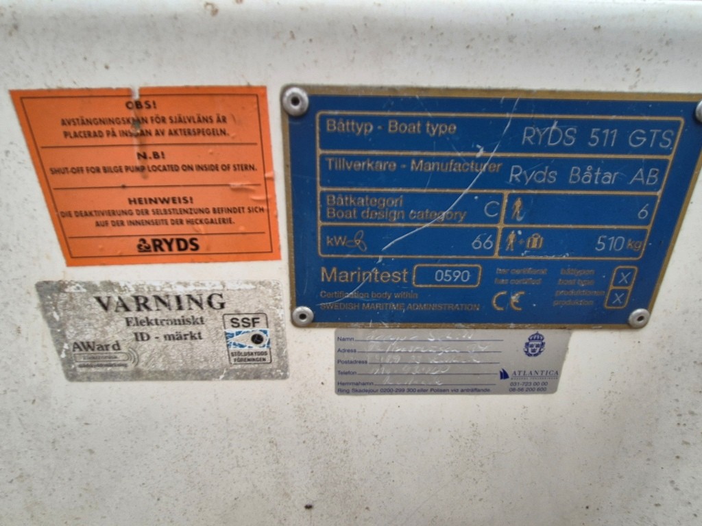 Styrpulpet Ryds 511 GTSTillverkningsår: -Längd: 5,10 mBredd: 2,20 mMotor: Mercury 75 ELPT -2001 (75hk)