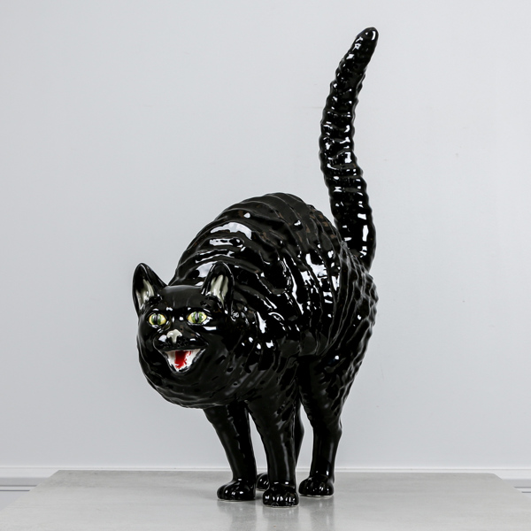 Skulptur , "Hissing Cat Gato", Bordallo Pinheiro, Portugal
