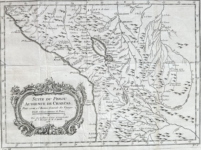 Bilder Jean-Baptiste Bourguignon d'Anville (1697–1782) – Continuation of Peru, Audience of Charcas – Copper Engraving (Circa 1756)