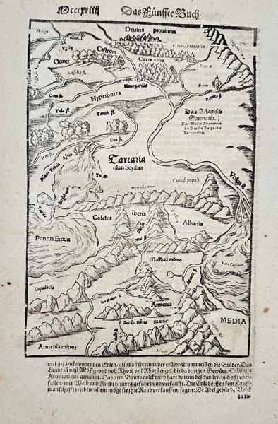 Bilder Sebastian Münster (1488–1552) – Map of the Caucasus Region and Tartaria from the Cosmographia – Woodcut (c. 1550)