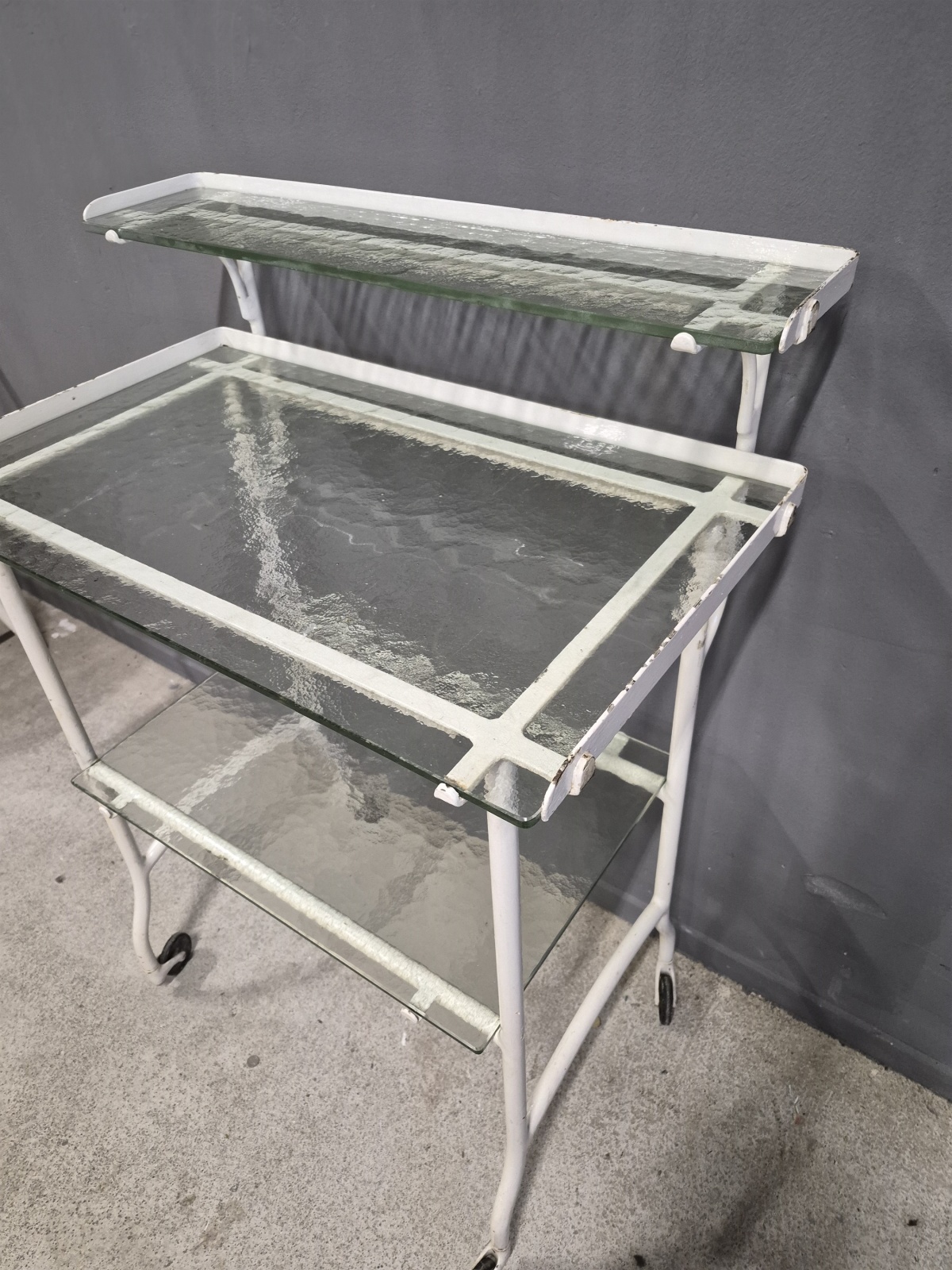 Läkarvagn metall och glas, höjd 107 cm, längd 77 cm, bredd 46 cm