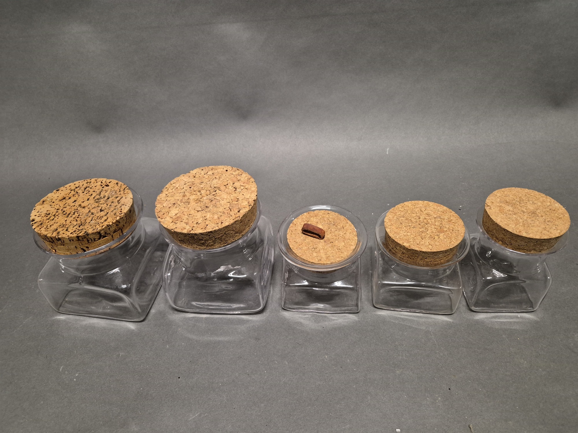 Bilder Glasburkar 5 st "Kvadrat" Signe Person-Melin Boda, högsta 14 cm