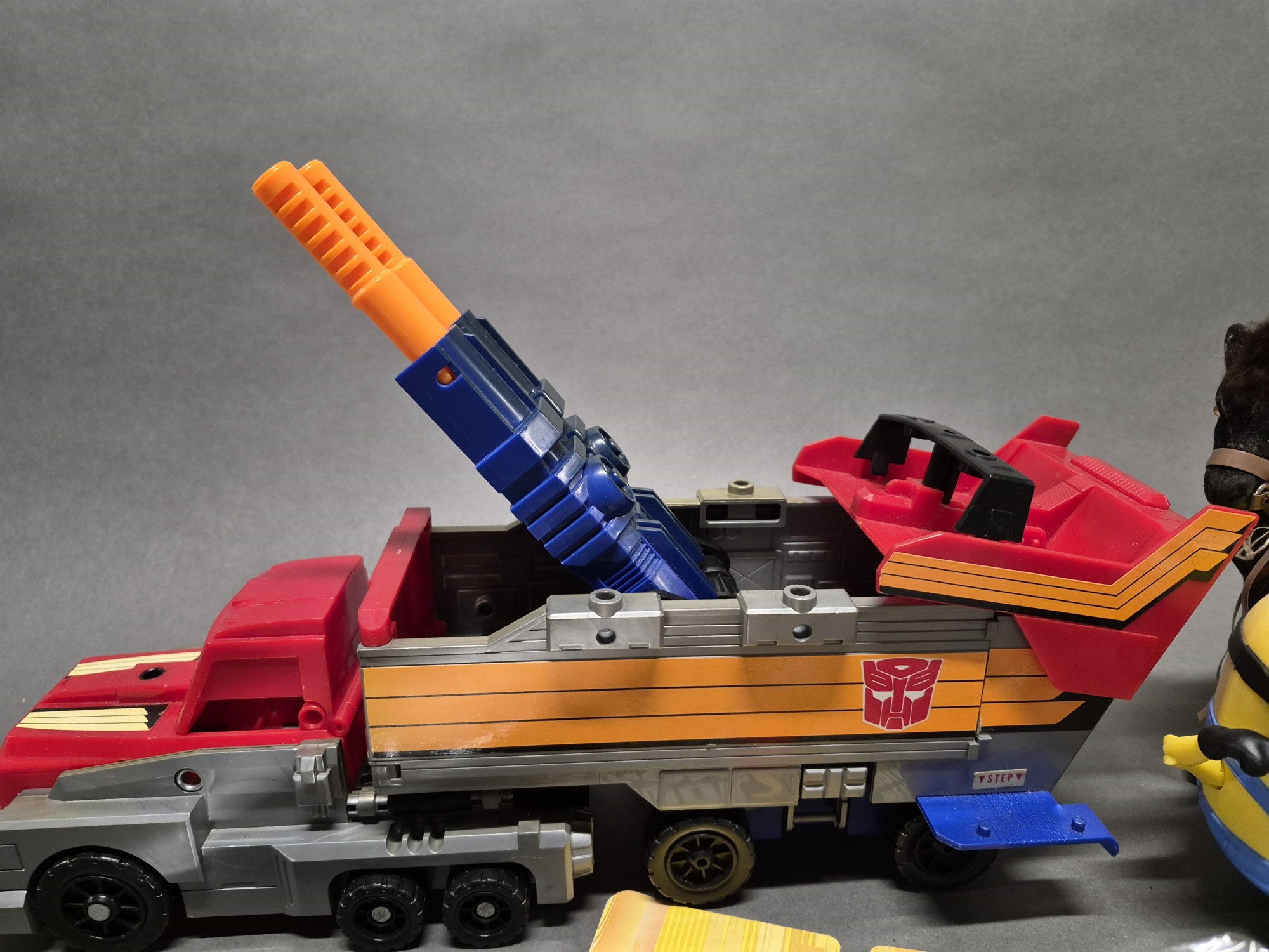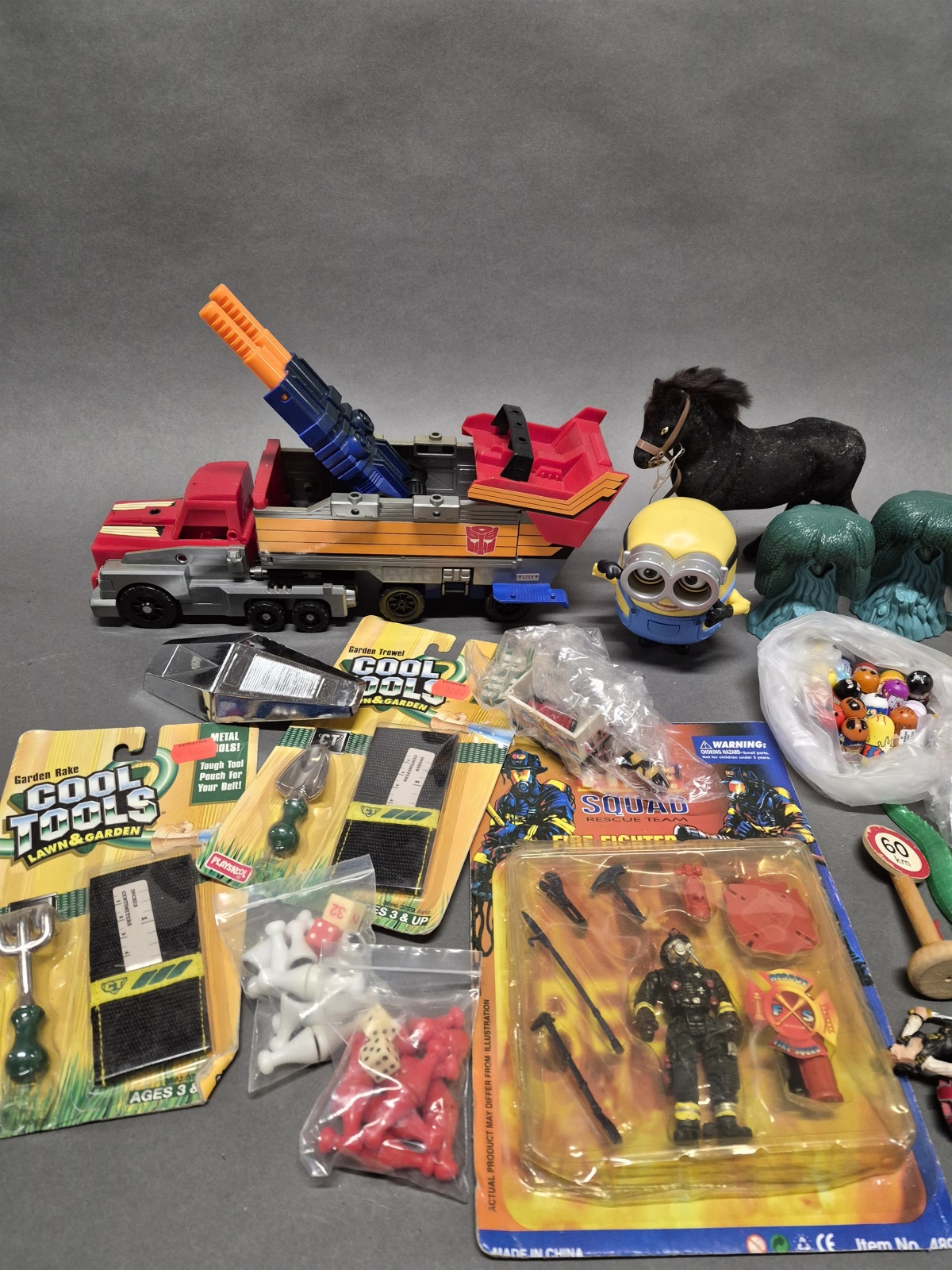 Parti leksaker bla transformers lastbil och Siku posten bilar, defektetr finns, längsta mått 37 cm