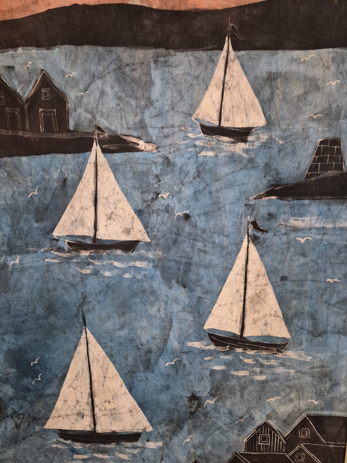 Tavla, Batik, segelbåtar mått 108 x 214 cm