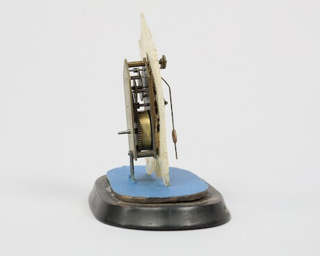 Bilder Miniatyrbordsur/Zappler Clock, 1800-tal, pärlemor, glaskupol, höjd 12 cm