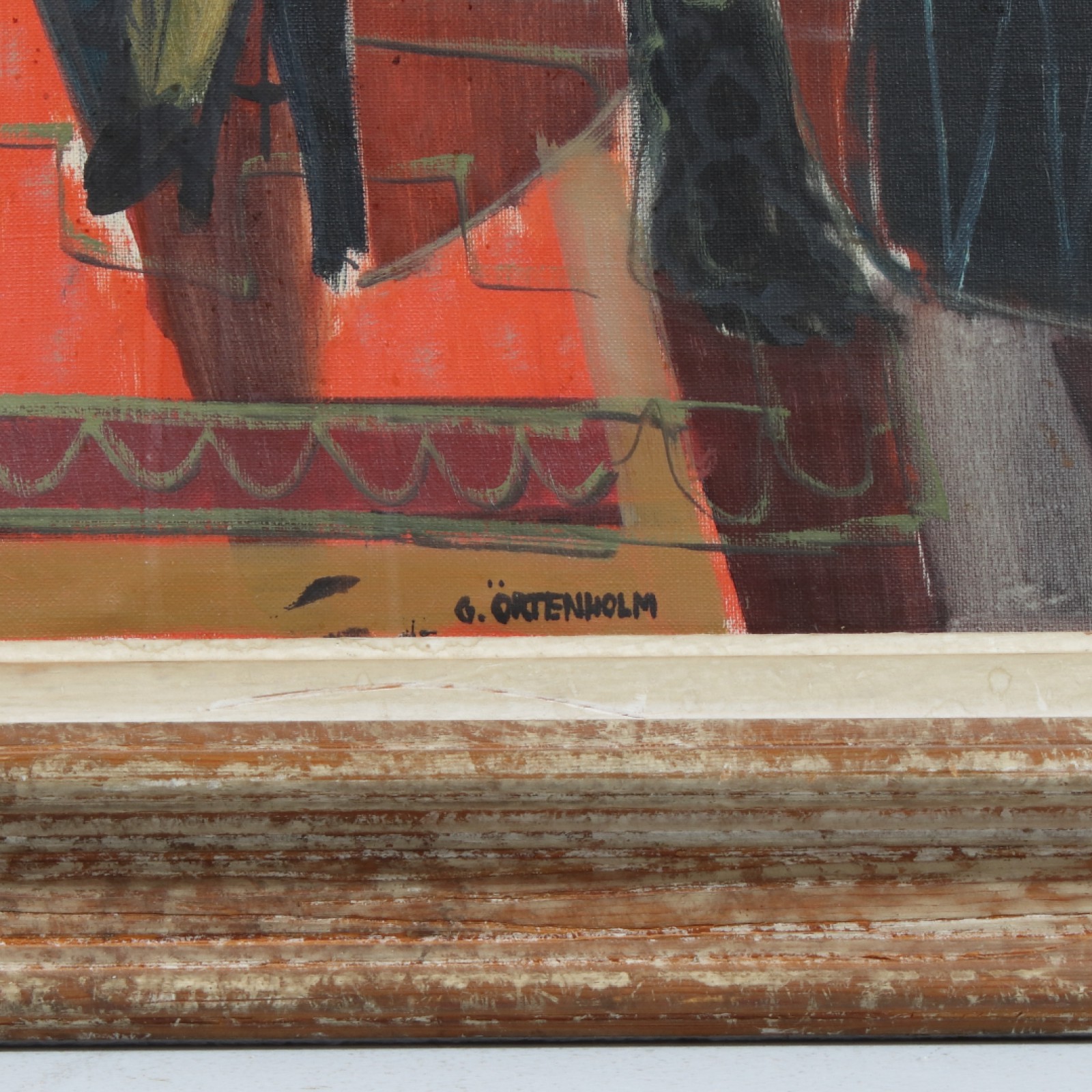 Olja på duk, "2 damer och interiör", ram 81x71 cm, bild 60x50 cm. (vån1)