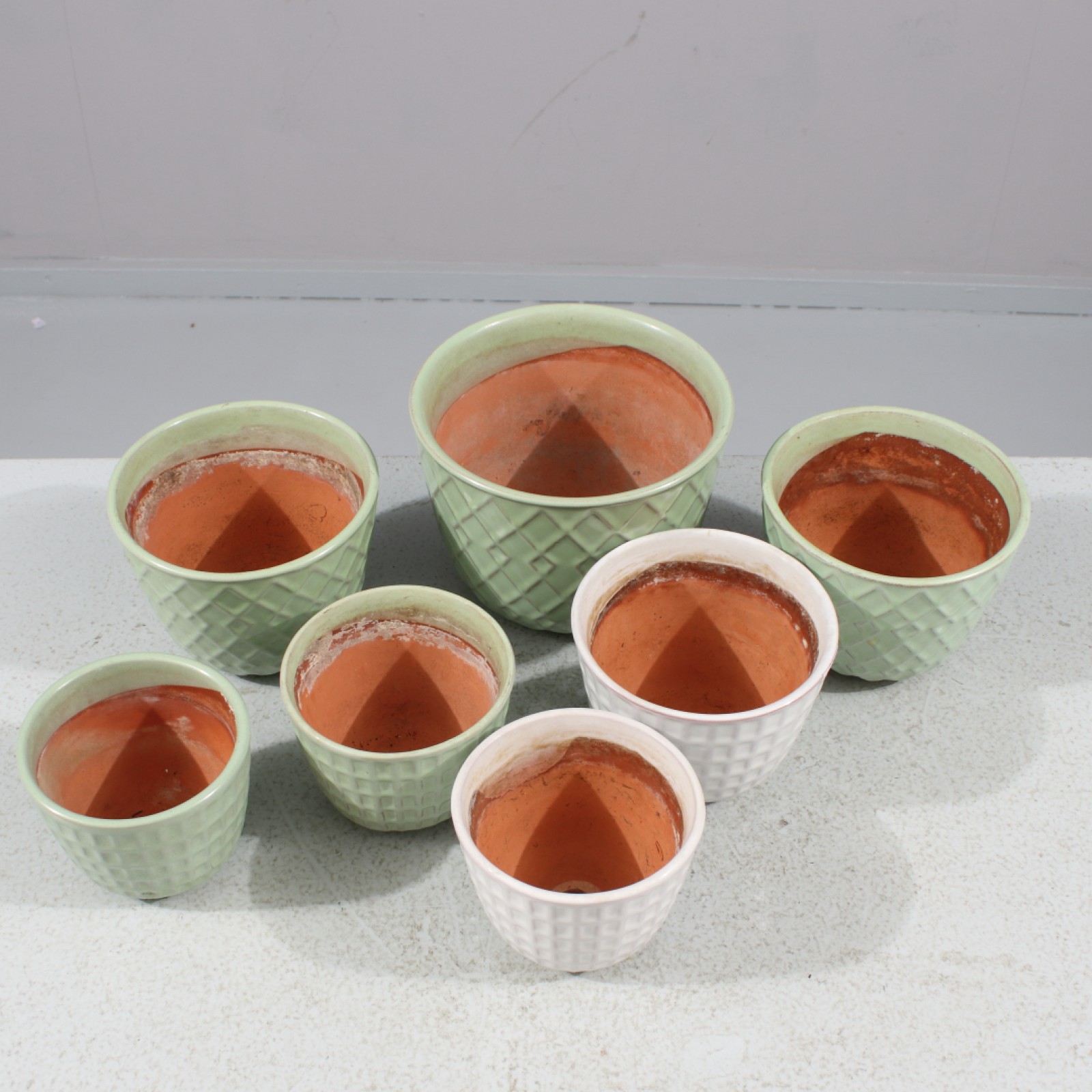 7 stycken, 1900-talets mitt, höjd 8-12 cm, diameter 10-15,5 cm. (vån3)