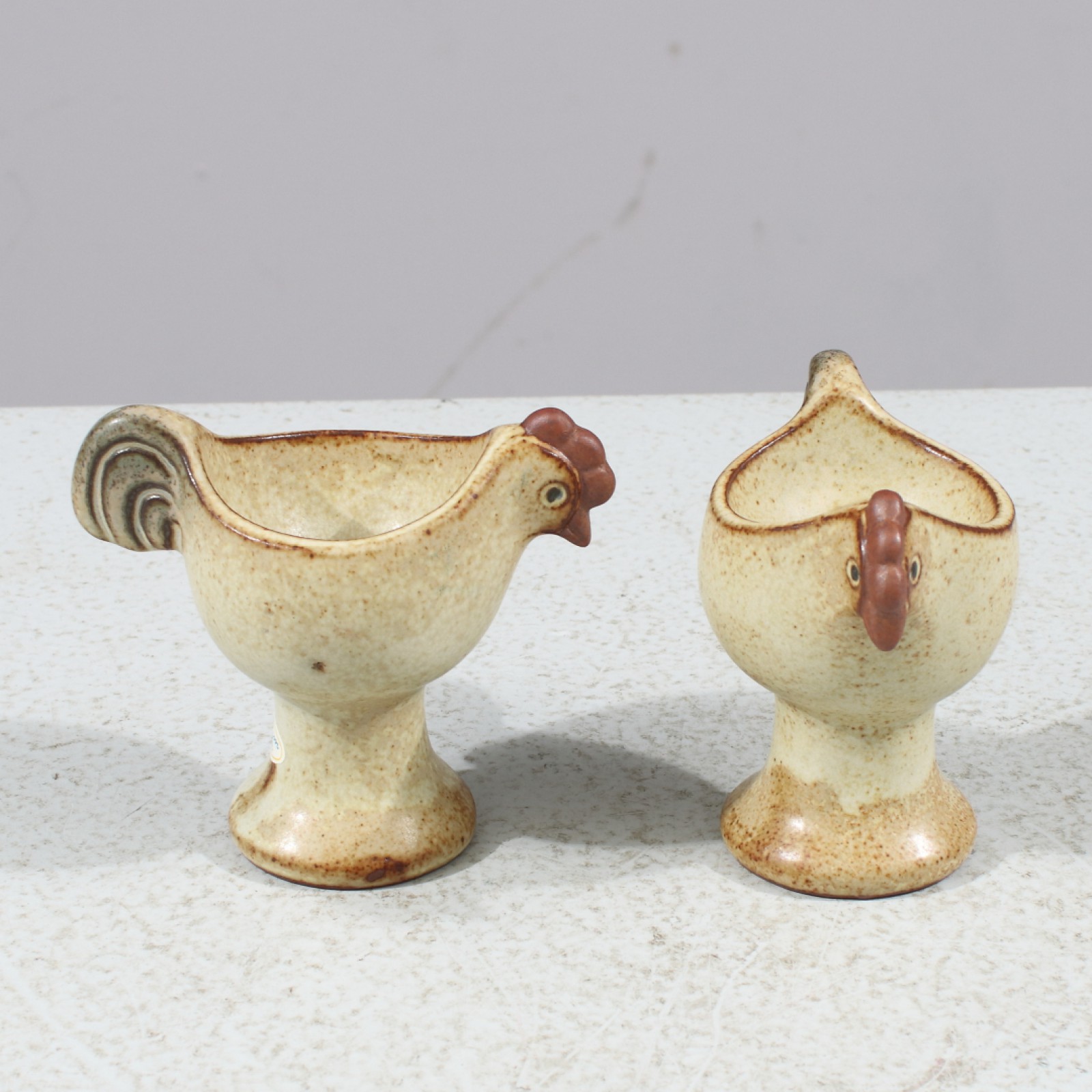 2 stycken (1 par), etikettmärkta "Lisa Larson Design", höjd 8 cm. (vån3)