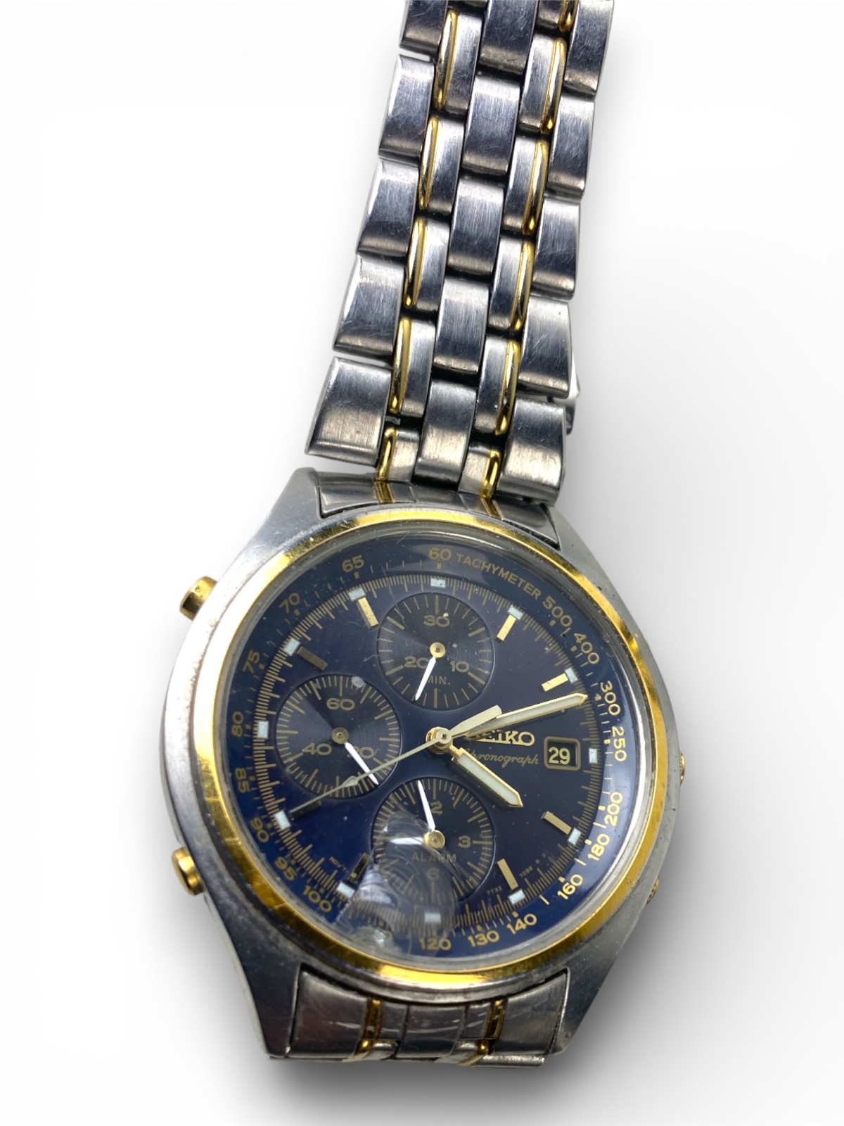 Diverse klockor, Bla.a. SEIKO Kronograf med "ideer ger resultat" ingraverat på baksidan