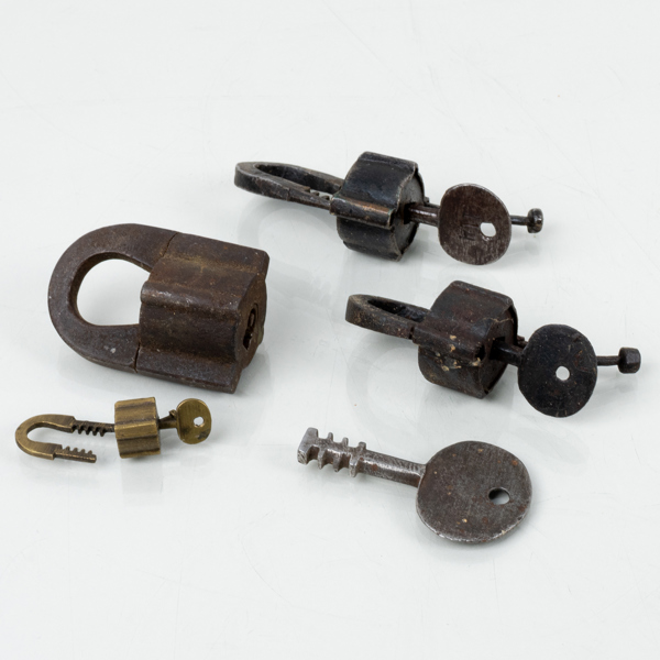 LÅS OCH NYCKLAR, smide och mässing, bla 1800-tal