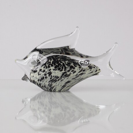 Glasfågel, Oiva Toikka, Iittala, Finland signerad + fisk FM L=20 och mindre
