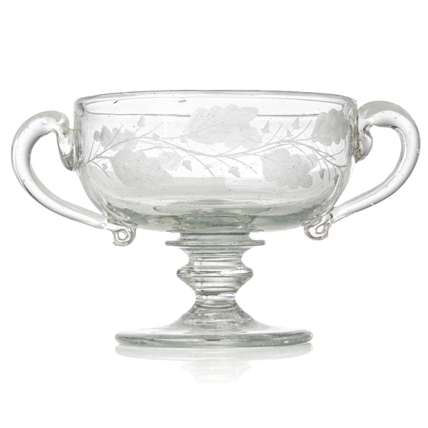 SMÖRASK, glas, graverad dekor, med hänklar, 1800-tal.