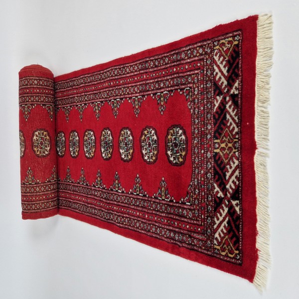 Handknuten med lugg av ull och varp av bomull, knuttäthet ca 160 000 knutar/m².