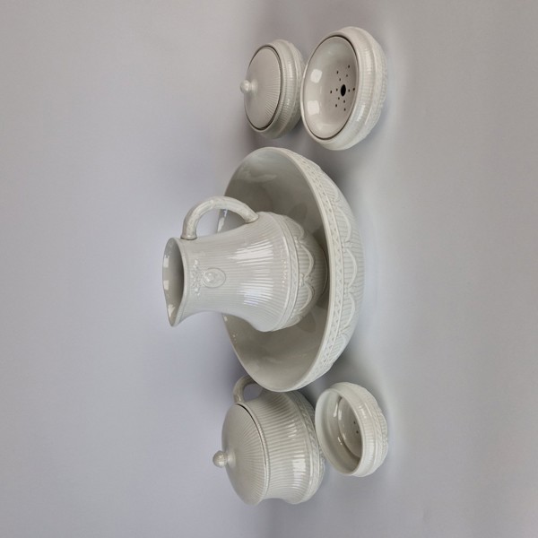 6 delar, vit, porslin, empirstil, omärkt.