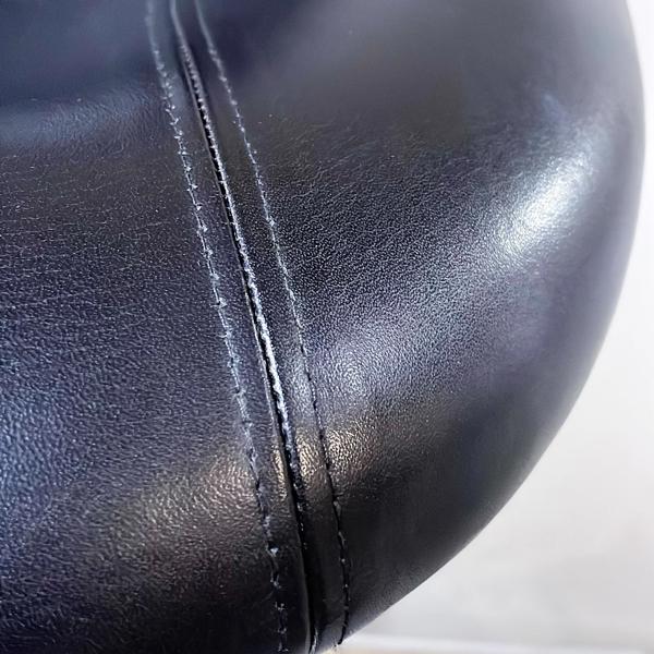 Kontorsstol från Support Design, modell Saga formgiven av Bruno Mathsson. Stolen har sits och rygg i mörkbrunt (nästan svart) läder med formpressad stoppning. Underrede i kromad metall. Ergonomiskt utformad arbetsstol idealisk för längre arbetspass, där den generöst formade sitsen och det mjukt rundade ryggstödet ger god avlastning.