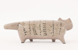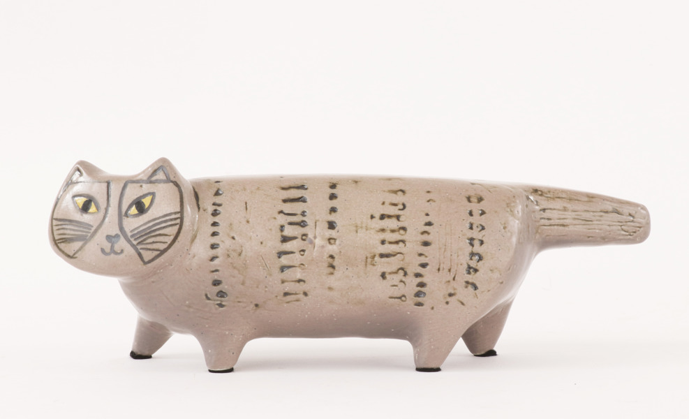 Stengods. I form av katt. Signerad.