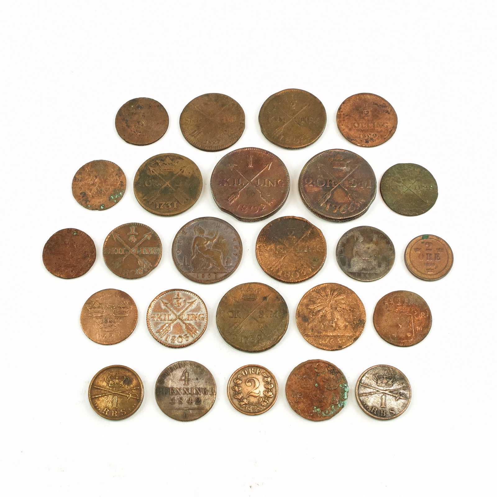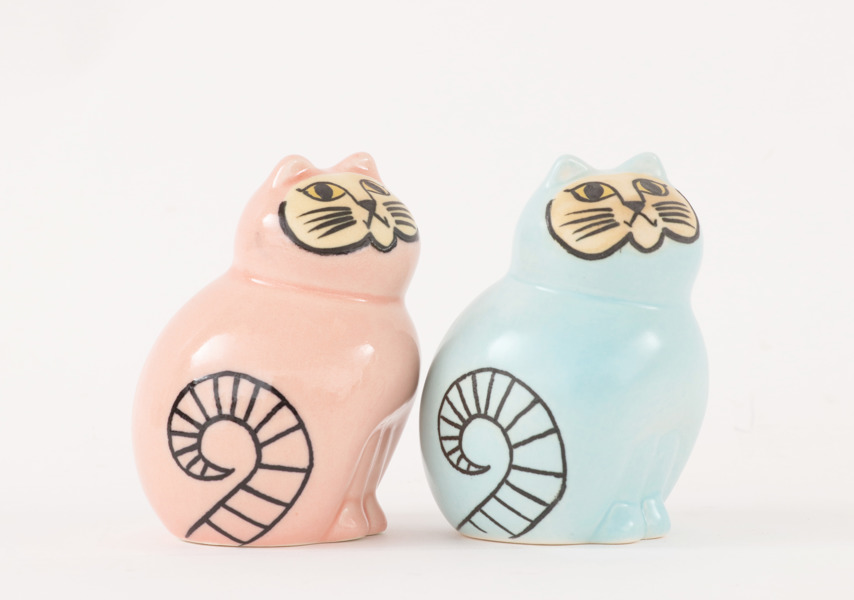Glaserat stengods. I form av katter. Stämplade.