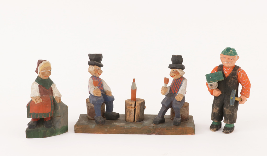 Figurgrupp samt gumma, Anders Blanck, Rättvik samt snickare, osignerad.