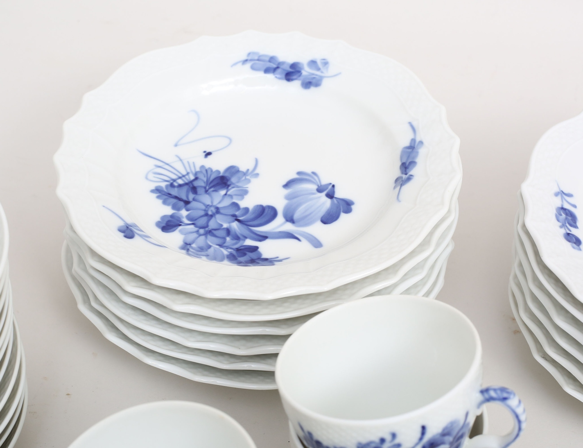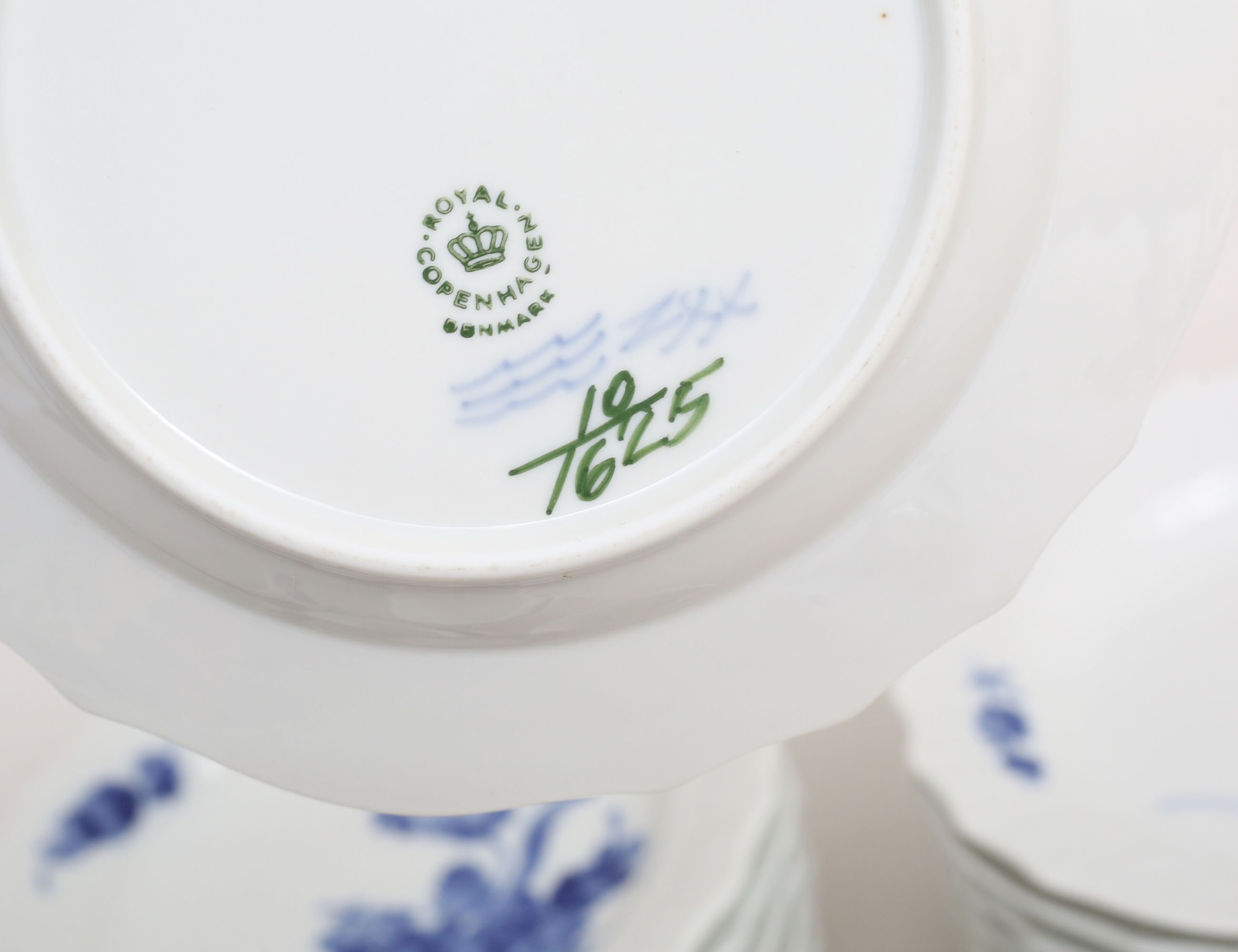 11 kaffekoppar med fat samt 12 assietter, Royal Copenhagen 1:a sortering, modellnummer 1549/1625