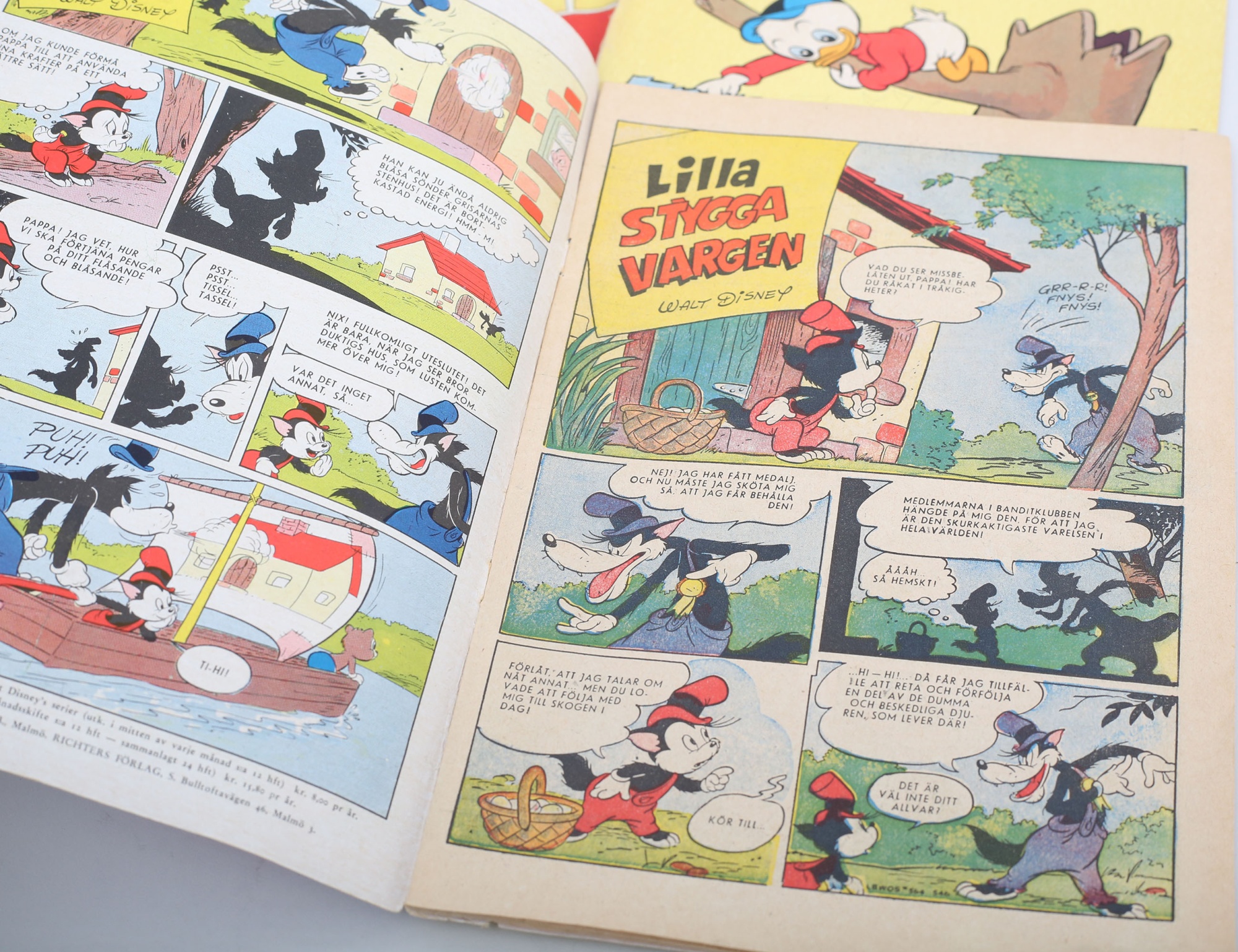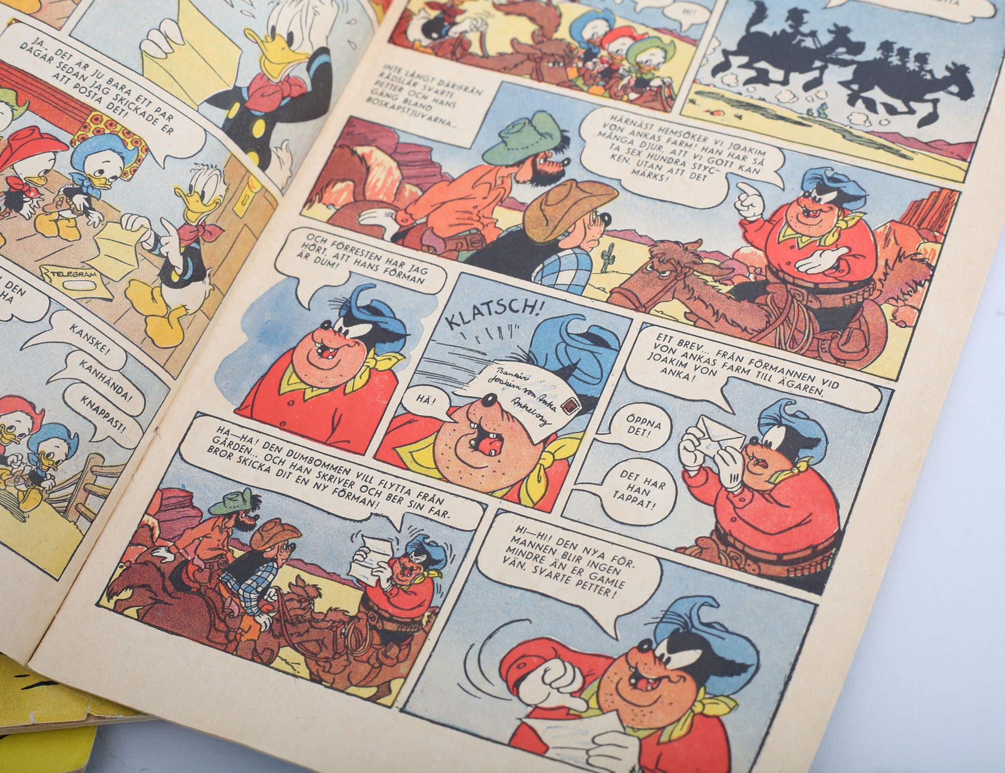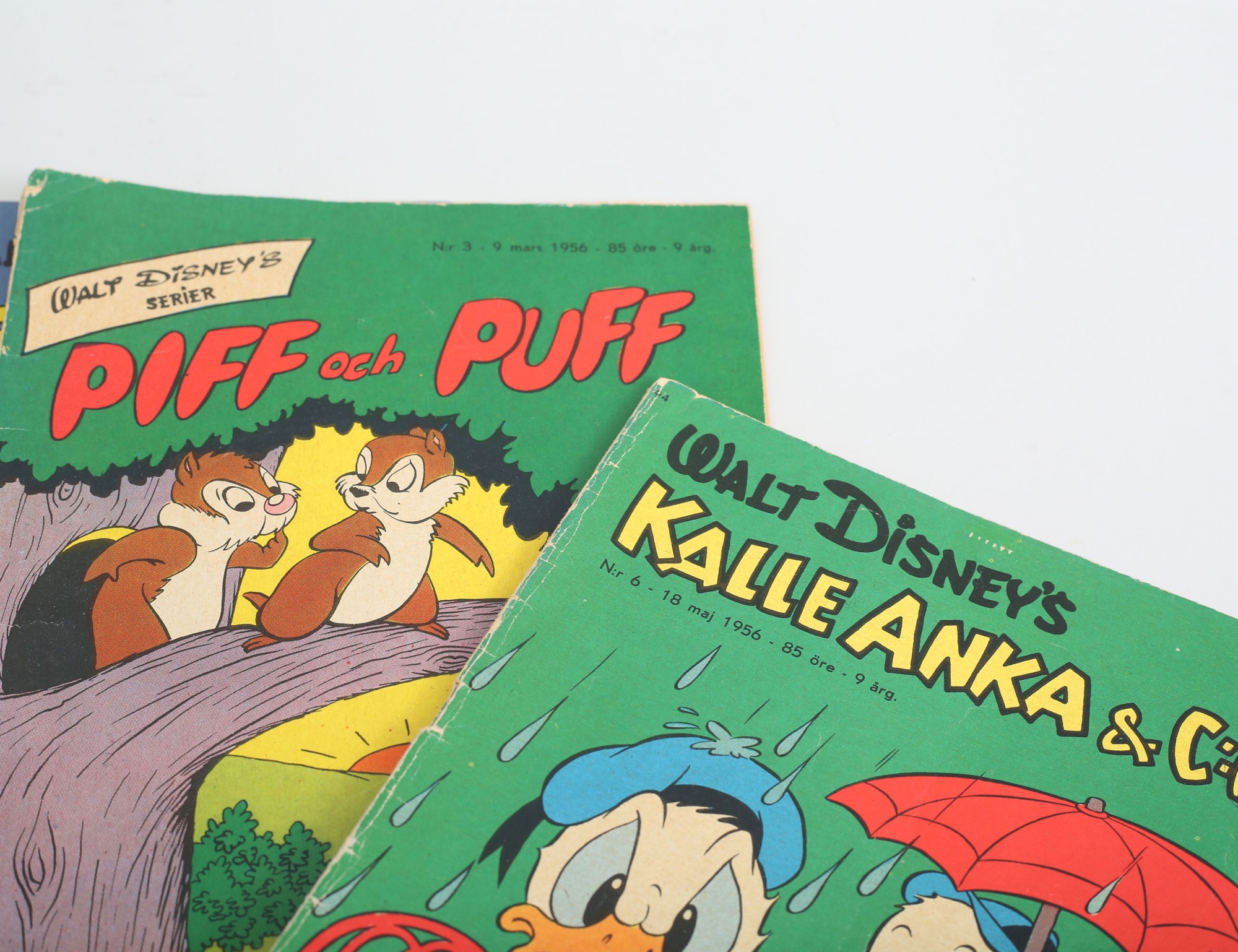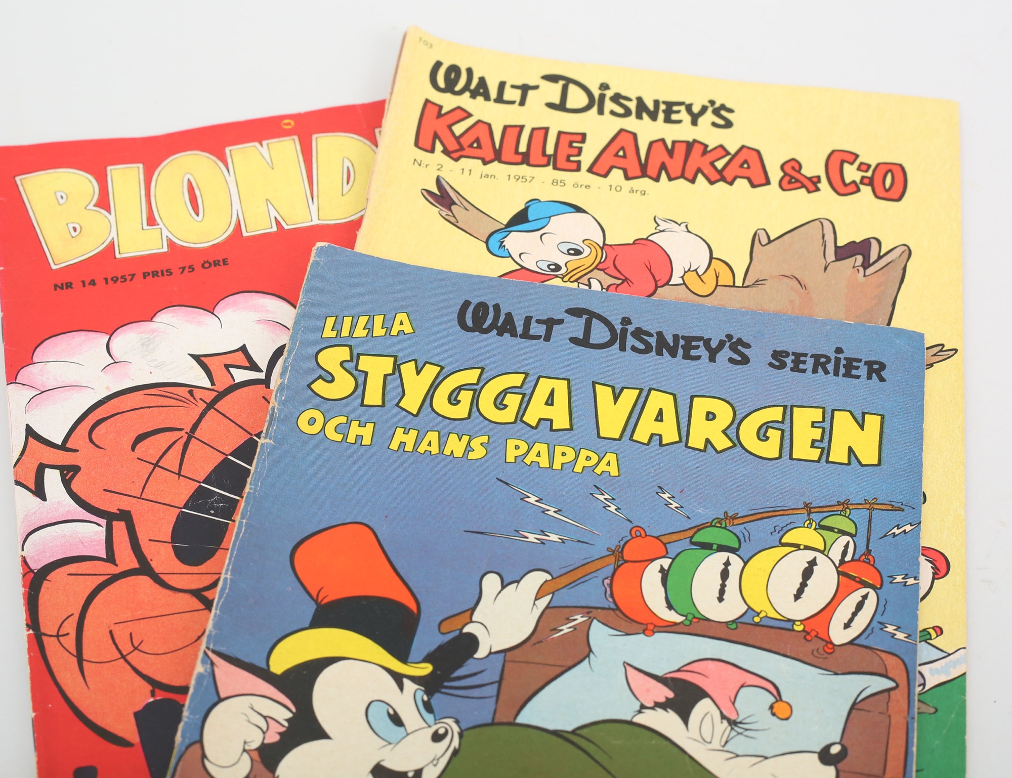 bla. Kalle Anka "Ferieparaden", nr. 6 1954, "Den gyllene hjälmen" nr 9. 1954, Piff & Puff nr. 3 1956, Lilla stygga vargen 1956, "Blondie" 1957 (bruksslitage, ej genomgångna)