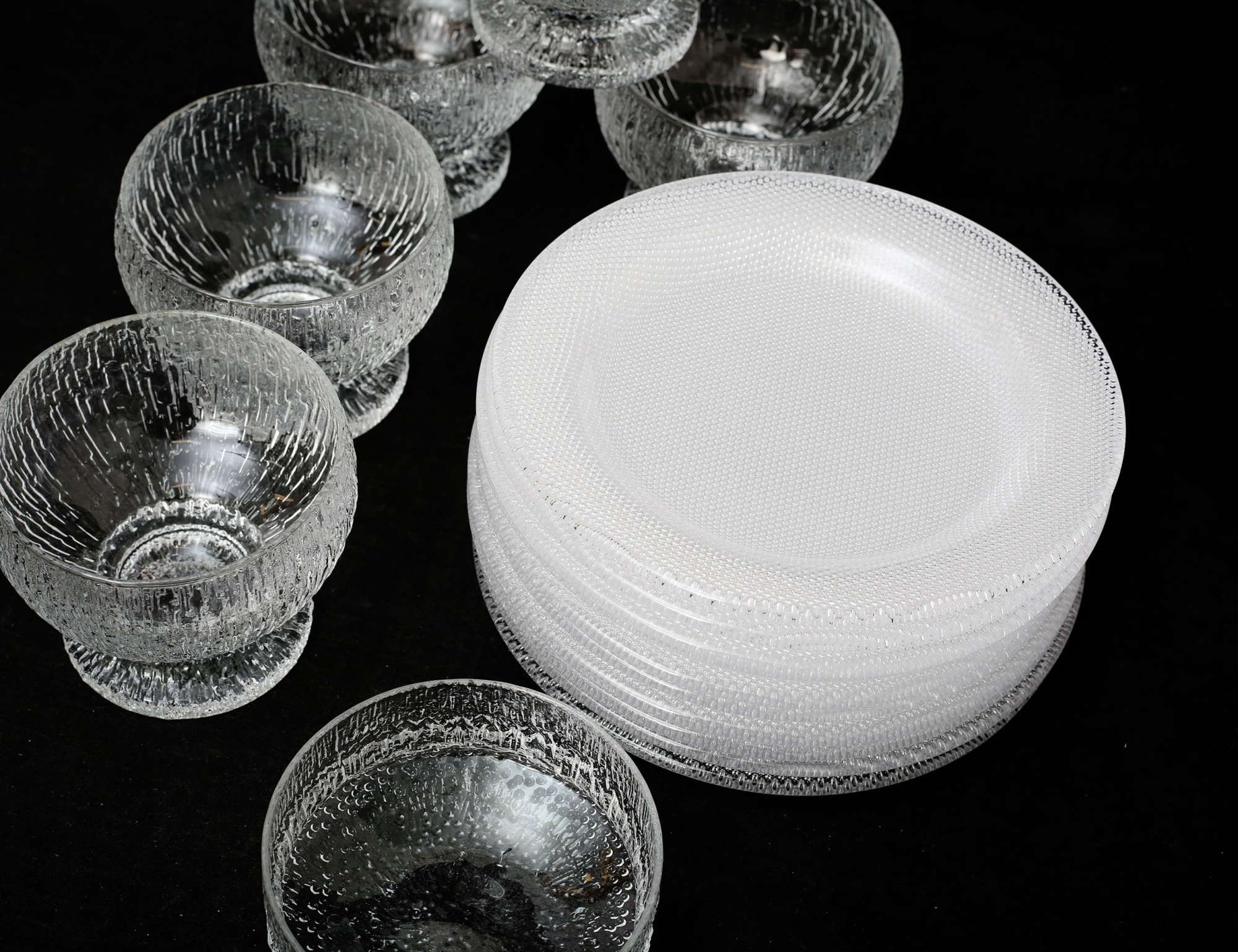 Göran Wärff Kosta Boda, diameter 19, 5 stycken coupeglas "Kekkerit", Timo Sarpaneva Iittala, höjd 9, dkål höjd 5