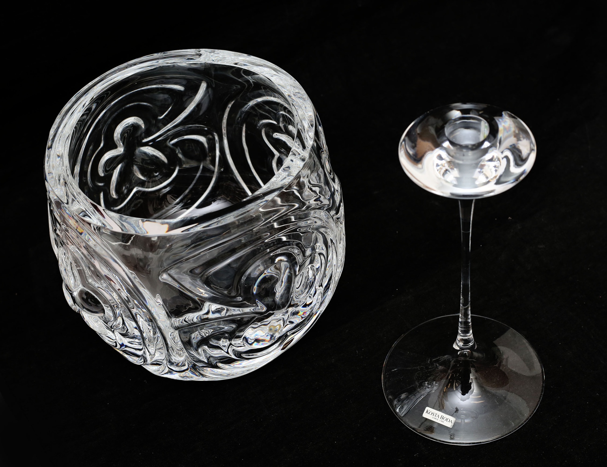 Heikki Orvala Arabia Iittala, höjd 19,5 (smärre beläggning) skål Martti Rytkönen Orrefors, diameter 17, ljusstake Kjell Engman Kosta Boda, höjd 22
