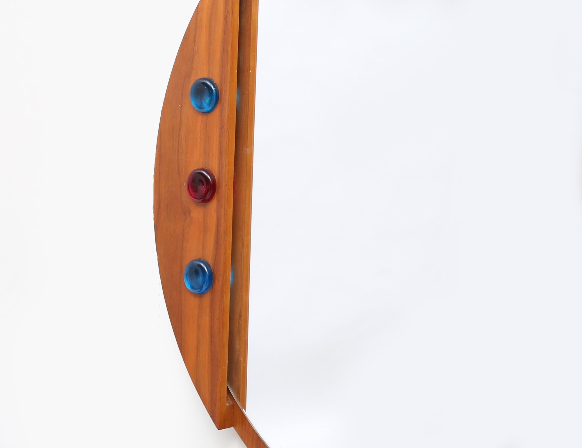 teak, infälld glasdekor, diameter 75 (glas med smärre fläckar)